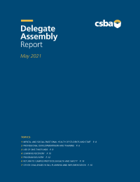 In addition to the May 2021 Delegate Assembly Report, CSBA released the Delegate Assembly Resource Guide, Turning crisis into opportunity: Resources for board members planning for the 2021–22 year and beyond. This guide provides board members with a collection of timely resources, recent research and evidence-based practices to help address the most important topics that were identified by Delegates.