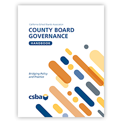 The CSBA County Governance Handbook is designed to give county board members a cohesive and practical overview of the work of California’s county boards of education. Through clear explanations, real-world context and relevant prompts, this resource aims to help you: