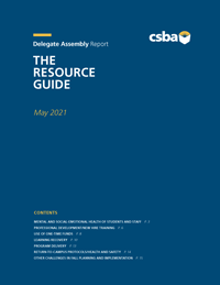 In addition to the May 2021 Delegate Assembly Report, CSBA released the Delegate Assembly Resource Guide, Turning crisis into opportunity: Resources for board members planning for the 2021–22 year and beyond. This guide provides board members with a collection of timely resources, recent research and evidence-based practices to help address the most important topics that were identified by Delegates.